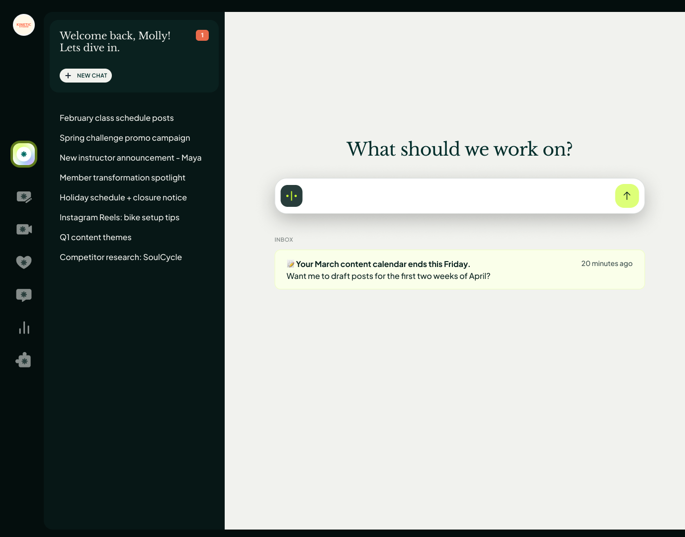 Coming soon: Manage multiple creative requests separately from your general chat history by creating individual threads for specific projects. This way, you can spot tasks, alerts, or items that need attention, instantly—no more endless scrolling.